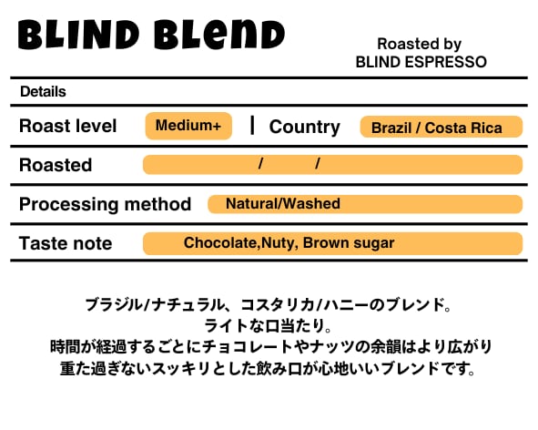 ブラジル/ナチュラル、コスタリカ/ハニーのブレンド。